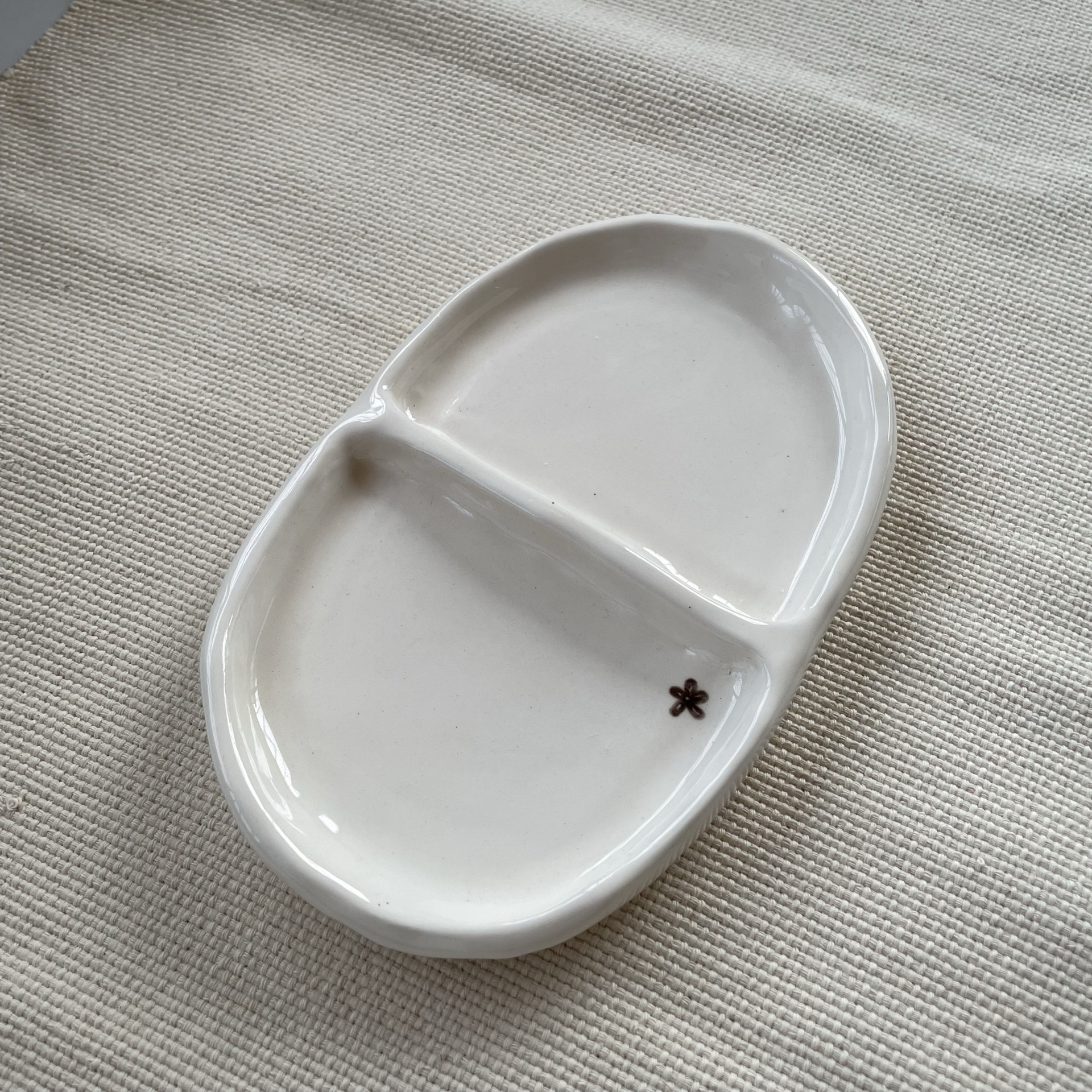 این ظرف کاربردی با لعاب سفید براق و گل زیبا قهوهایاش مناسب برای چیدمان های مینیمال و شیک است.