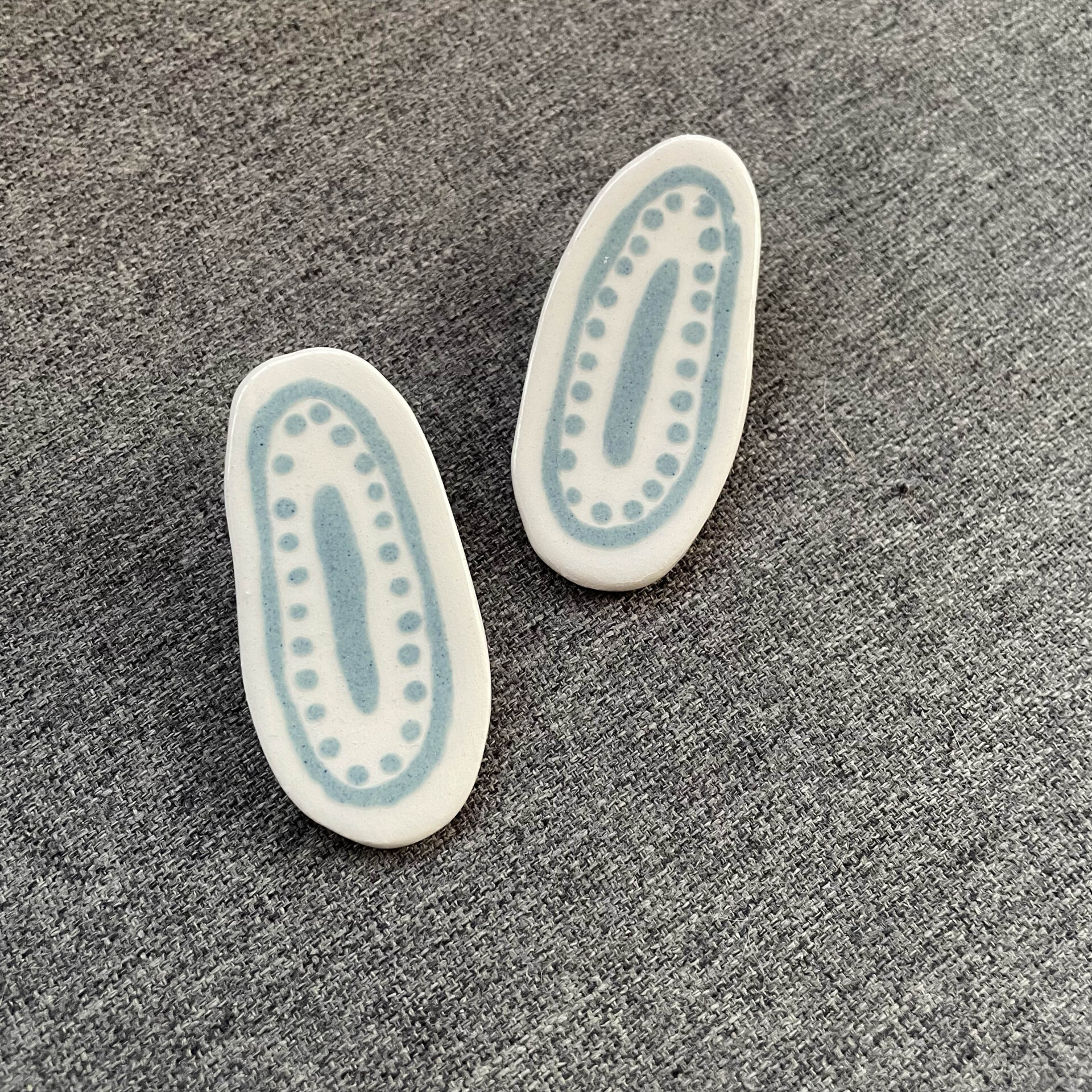 گوشواره سرامیکی نما با طرحی الهام گرفته از بافت های طبیعی و رنگ ملیح آبی آسمان جلوه ای مینیمال و آرام به استایل شما میبخشد.