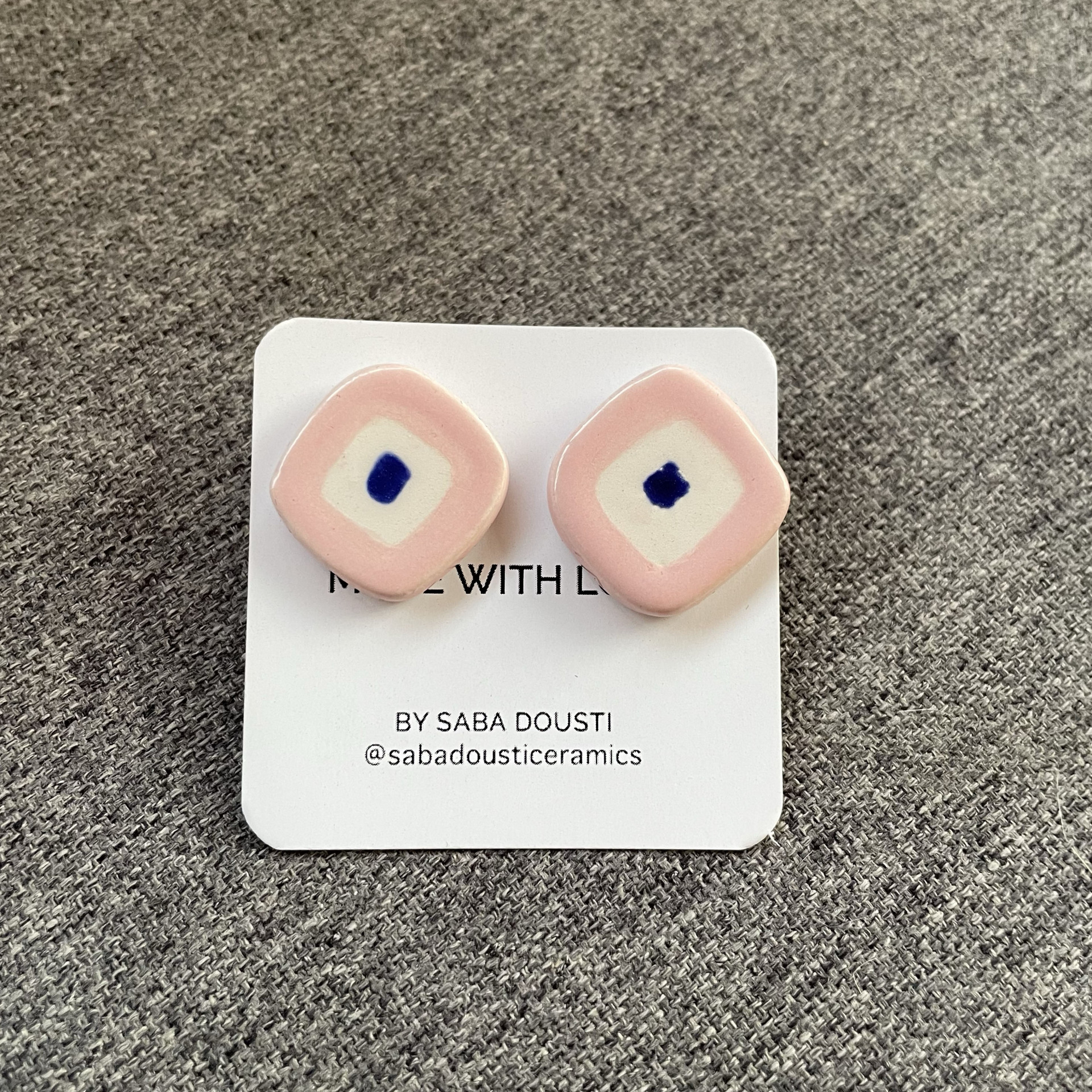 چشم نظرها از دیرباز تاکنون مورد علاقه اکثر افراد به ویژه خانم ها برای زیورآلات هستند. گوشواره سرامیکی چشم با رنگ صورتی اش جلوهای دیگر از چشم نظرها را دارد.