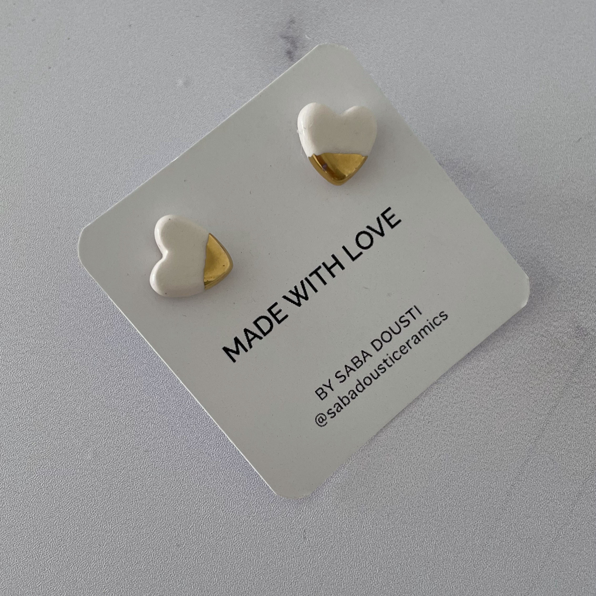 گوشواره دل با ترکیب رنگ سفید و طلایی خود جلوه ای زیبا بر روی گوشهایتان خواهد داشت.