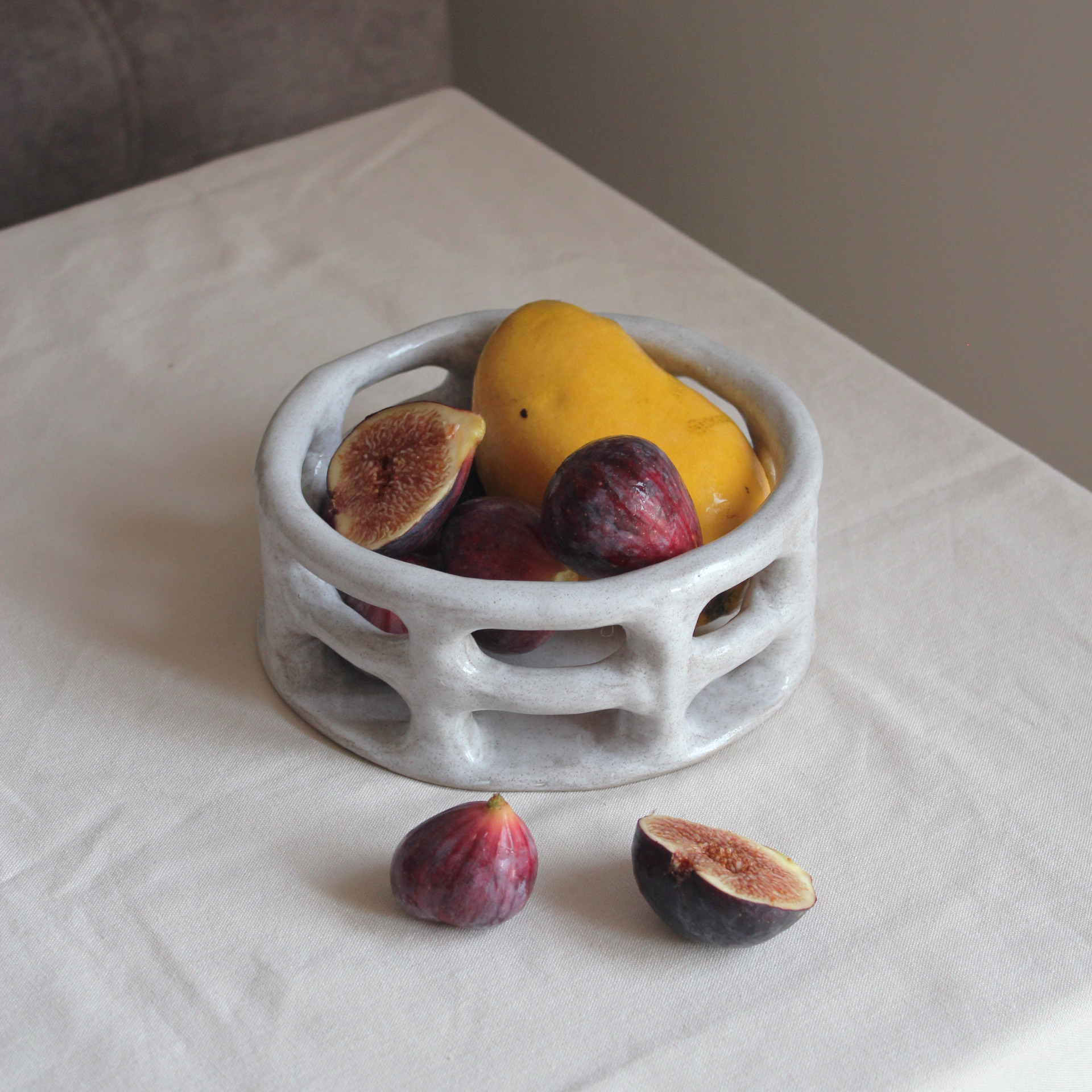 در طراحی این بسکت، فرم آزاد و ساختار شبکهای با لعابی مینیمال ترکیب شده تا فضایی برای تنفس میوهها فراهم کند و در عین حال یک عنصر دکوراتیو چشمنواز باشد.